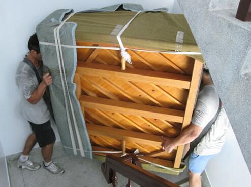 ④搬運鋼琴上車后應(yīng)站立擺放,保持鋼琴受力的均勻性,同時,師傅還會對鋼琴作出全方位的保護,鋪墊搬家特制絨布,減少琴和車的摩擦,在邊邊角角的地方采用泡沫膠封箱。